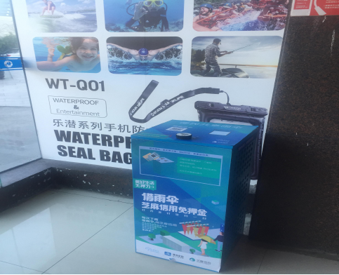 大厦是个综合体,,,,,,共享雨伞的引进,,,,,,解决了商城、写字楼租户面临伞到用时方恨无的尴尬田地。。。。。。