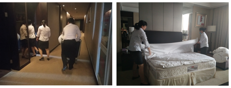 只管是忙碌的接待,,,,,,,客房部在房多人少的情形下,,,,,,,后勤部分员工相互支援,,,,,,,同心协力一起完成事情,,,,,,,在一次次的抢房事情中,,,,,,,这样的旅馆内部调配就显得尤为主要。。。。。。